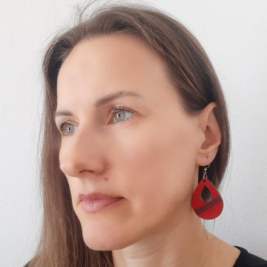 Unikatne crvene drvene naušnice u obliku suze