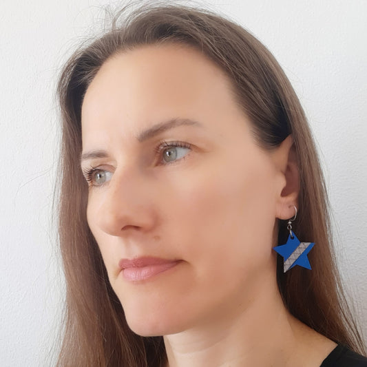 Plave unikatne drvene naušnice u obliku zvijezde