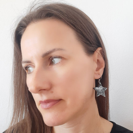 Crne drvene naušnice u obliku zvijezde sa srebrnim detaljima