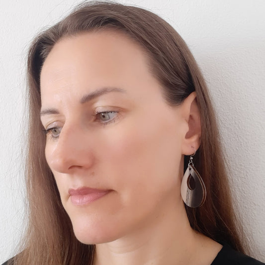 Unikatne drvene naušnice u obliku suze u crno-bijeloj boji