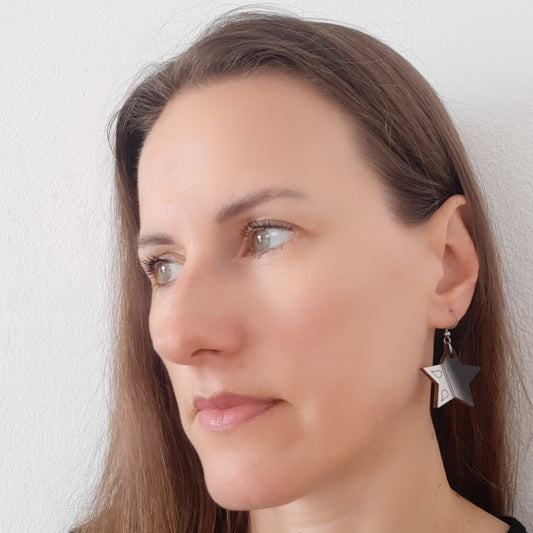 Unikatne crno-bijele drvene naušnice u obliku zvijezde