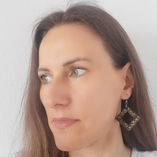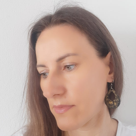 Unikatne drvene naušnice u crnoj i zlatnoj boji
