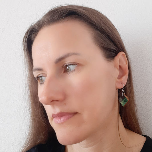 Unikatne male zelene drvene naušnice