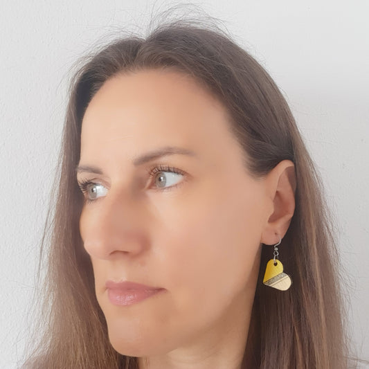 Unikatne male žute drvene naušnice u obliku srca