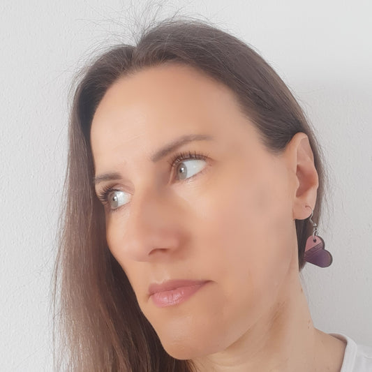 Unikatne male ljubičaste drvene naušnice u obliku srca