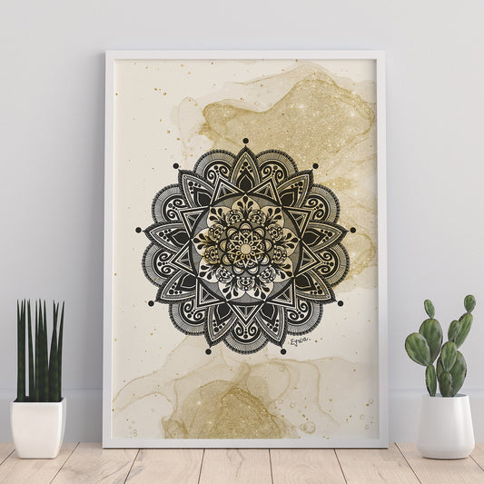 Smeđe Zlatna Mandala Kvadratna - Art Print