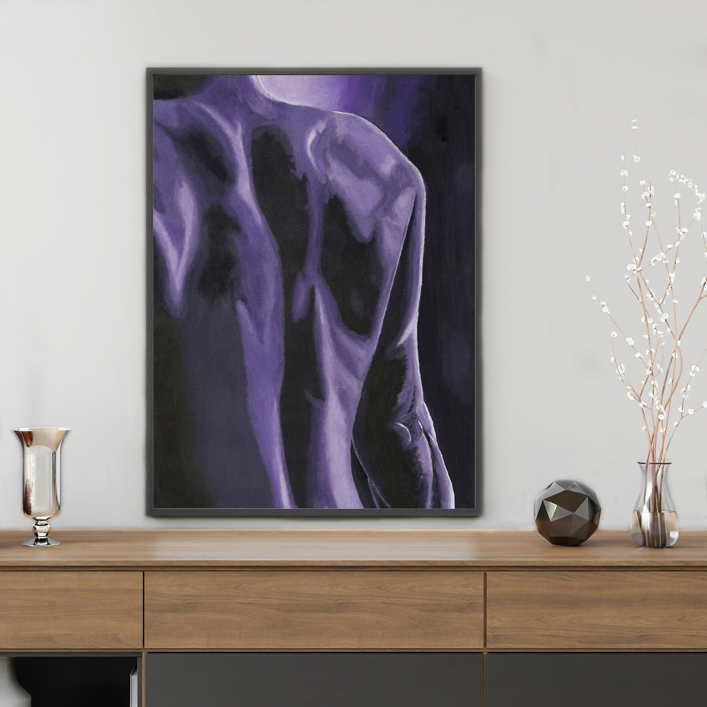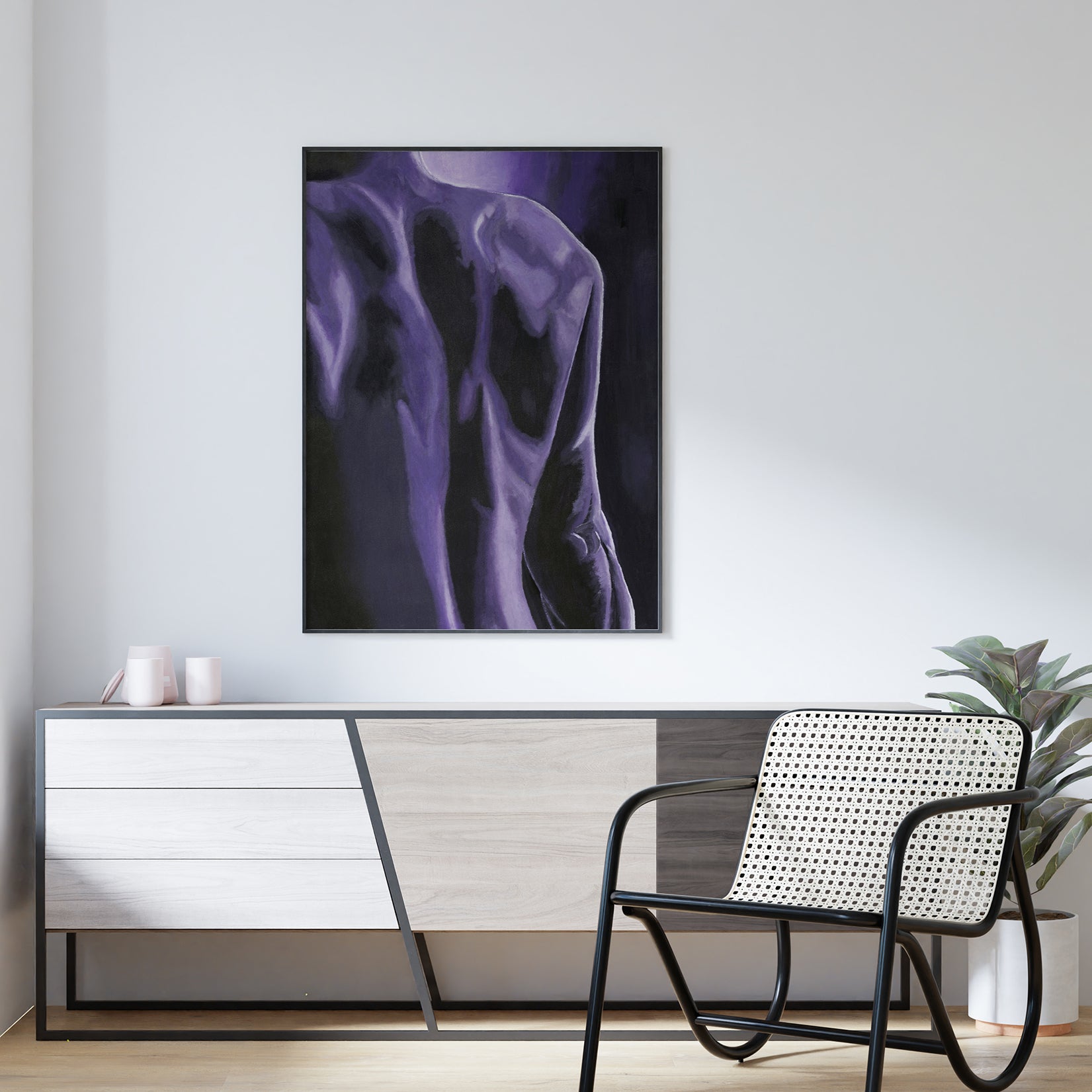 Art print originalne slike na platnu s akrilom iz ljubičaste serije "Body Parts" koja predstavljaju mušku i žensku energiju.